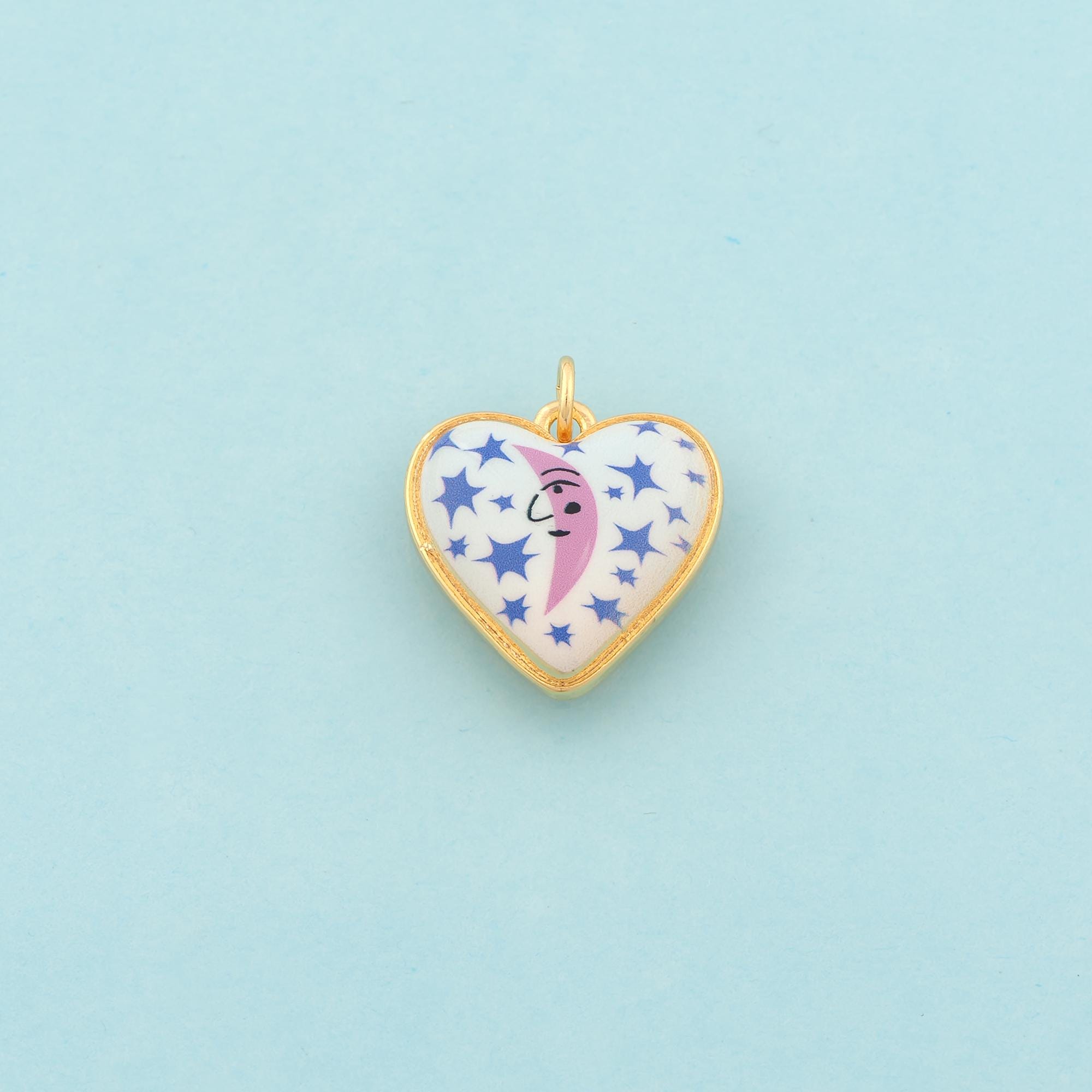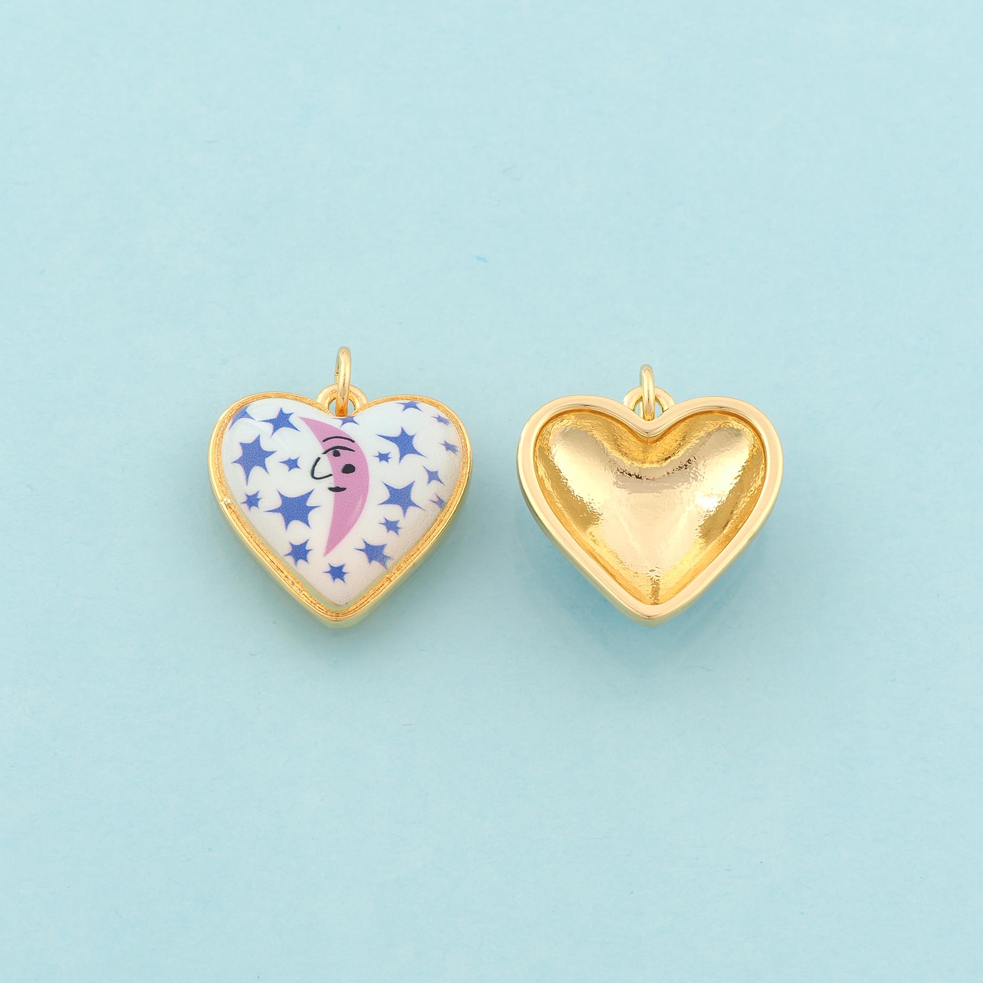 Gold Heart Charms,Moon Star Jewelry,Enamel Love Pendant for DIY Jewelry Making,18K Gold