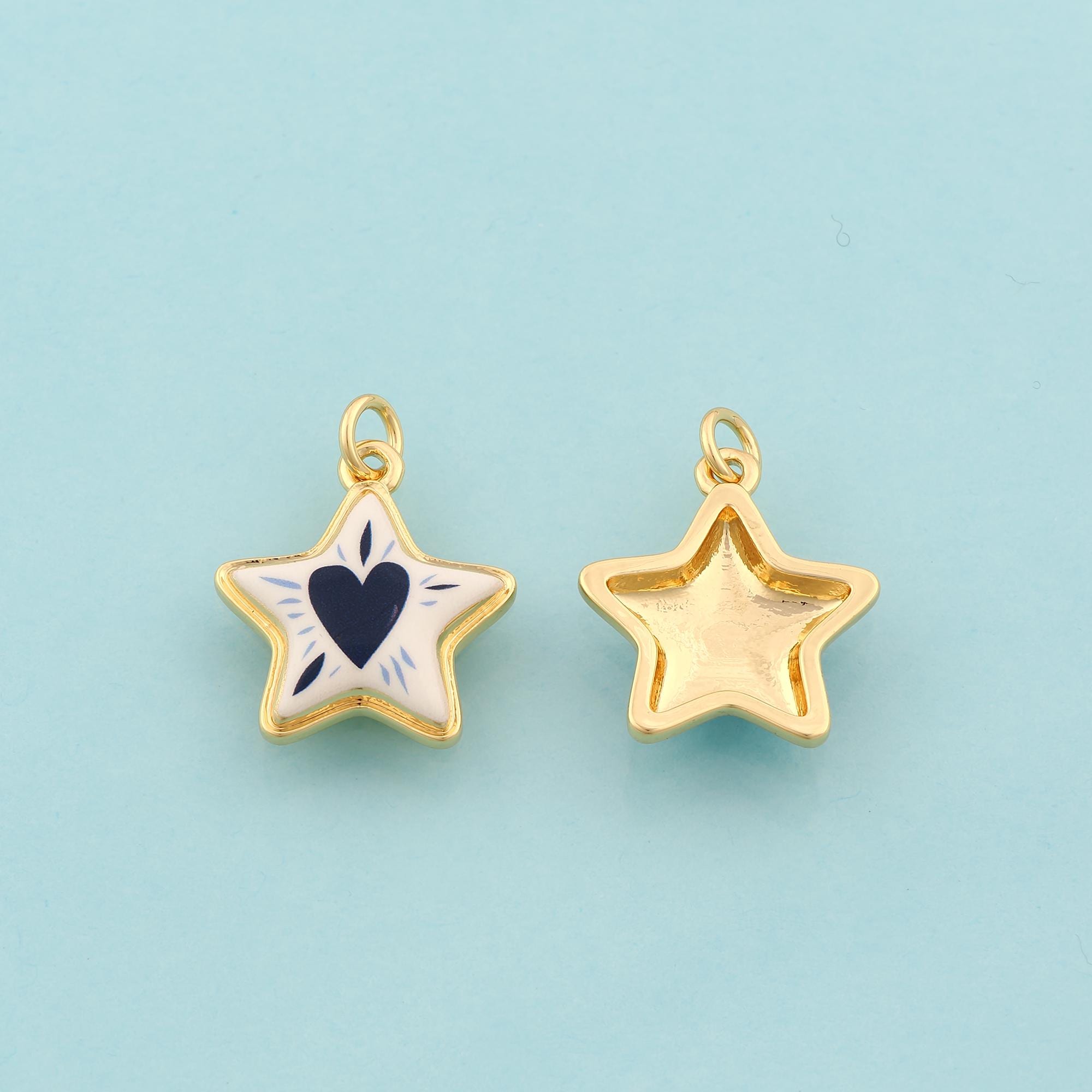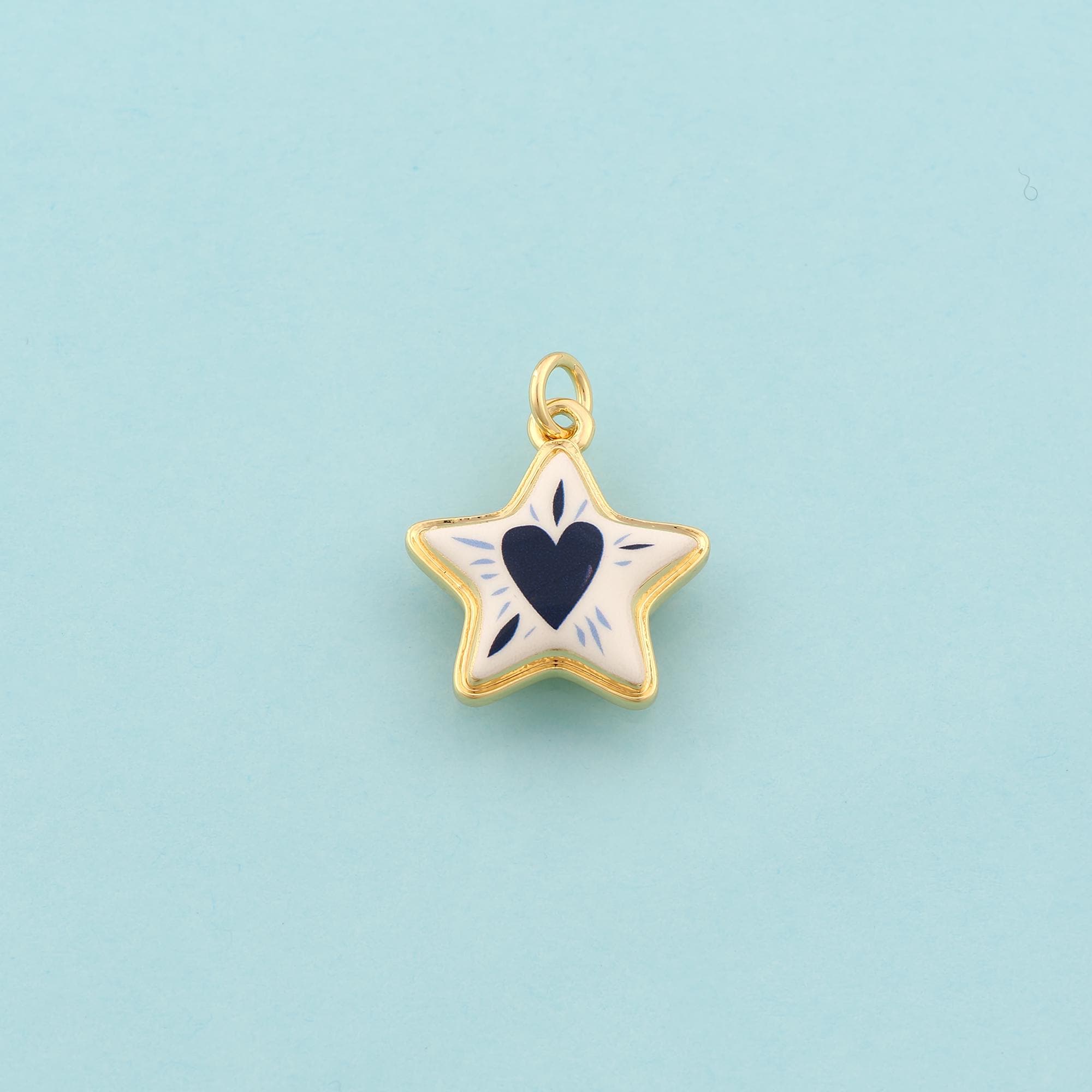 Gold Star Charms,Heart Jewelry,Enamel Starburst Pendant for DIY Jewelry Making,18K Gold