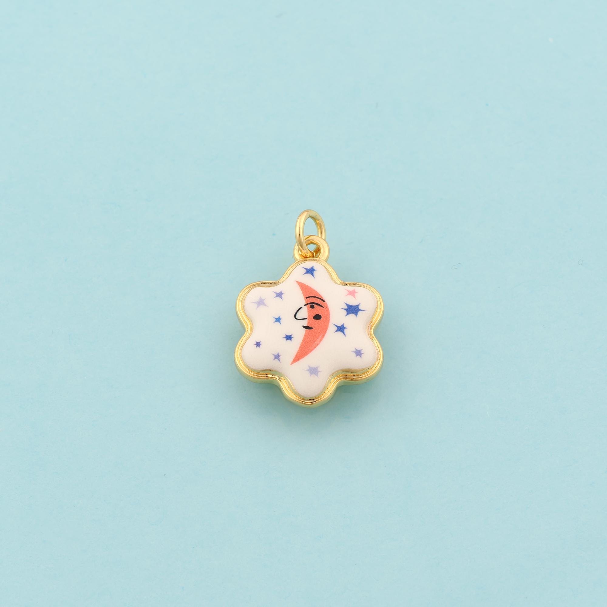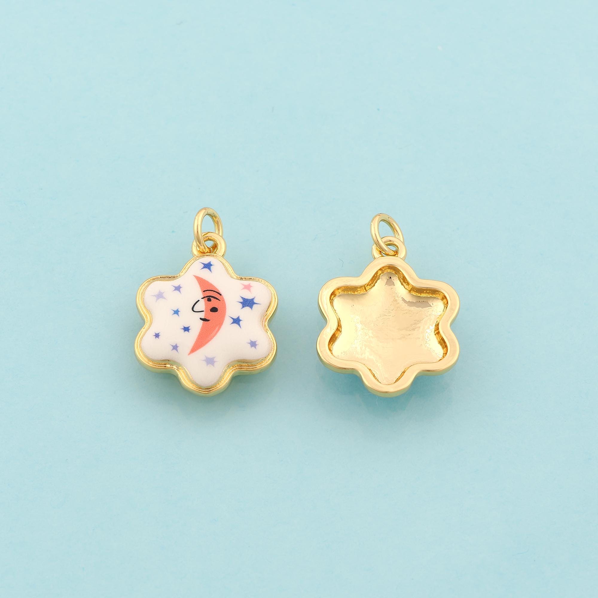 Gold David Star Charms,Jewish Star Jewelry,Enamel Moon Star Pendant for DIY Jewelry Making,18K Gold