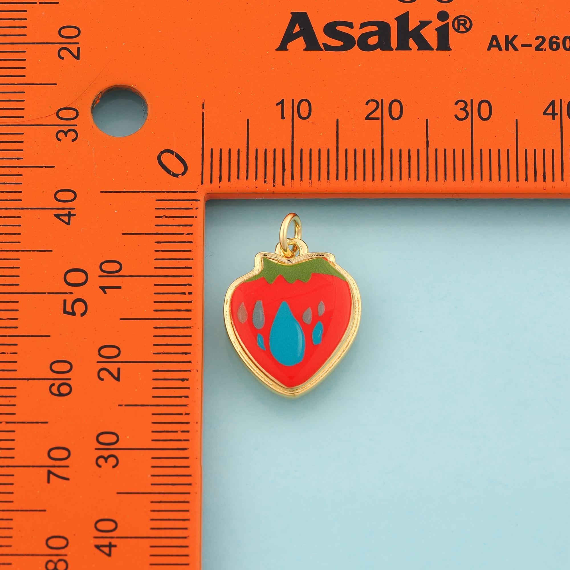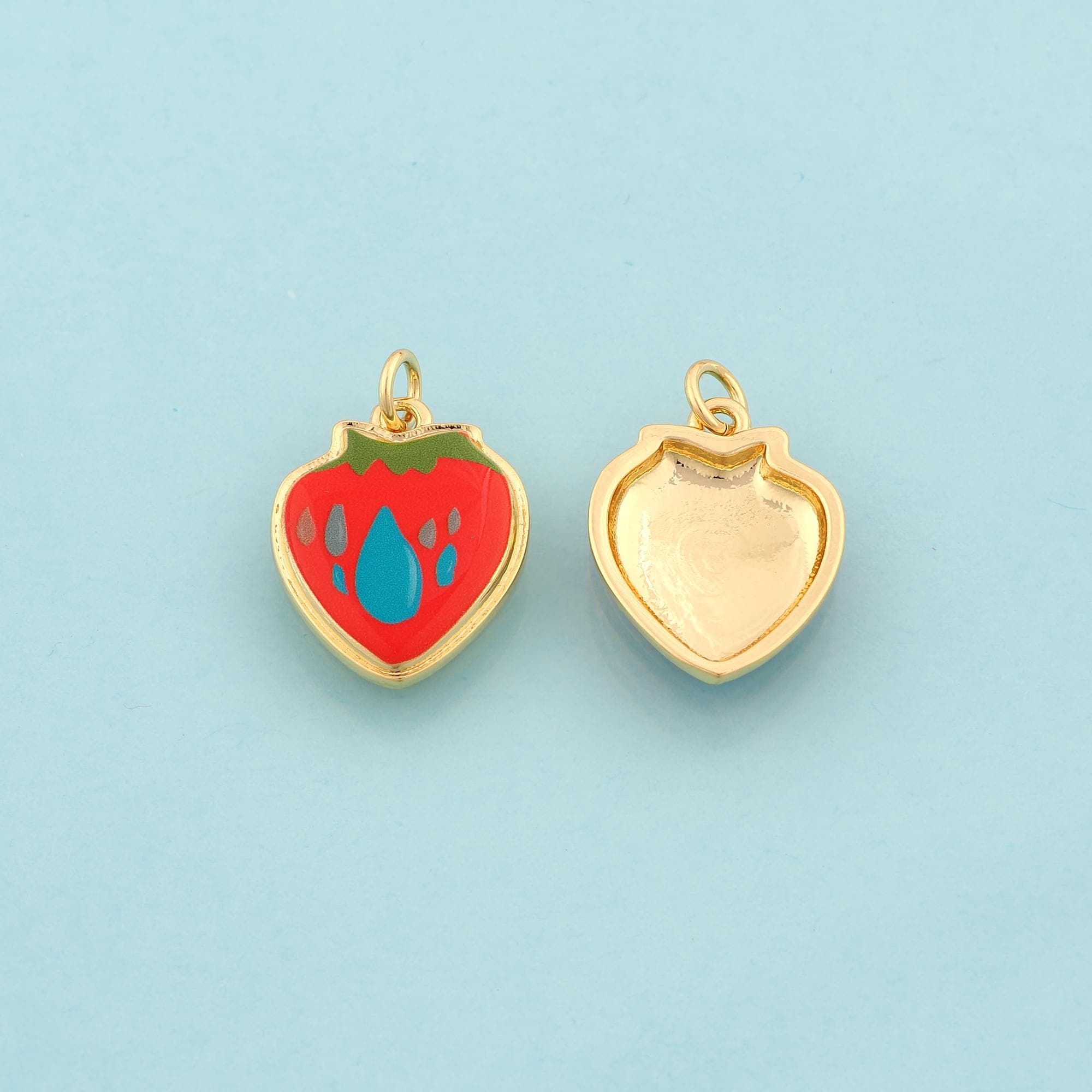 Gold Strawberry Charms,Fruit Jewelry,Enamel Water Drop Pendant for DIY Jewelry Making,18K Gold