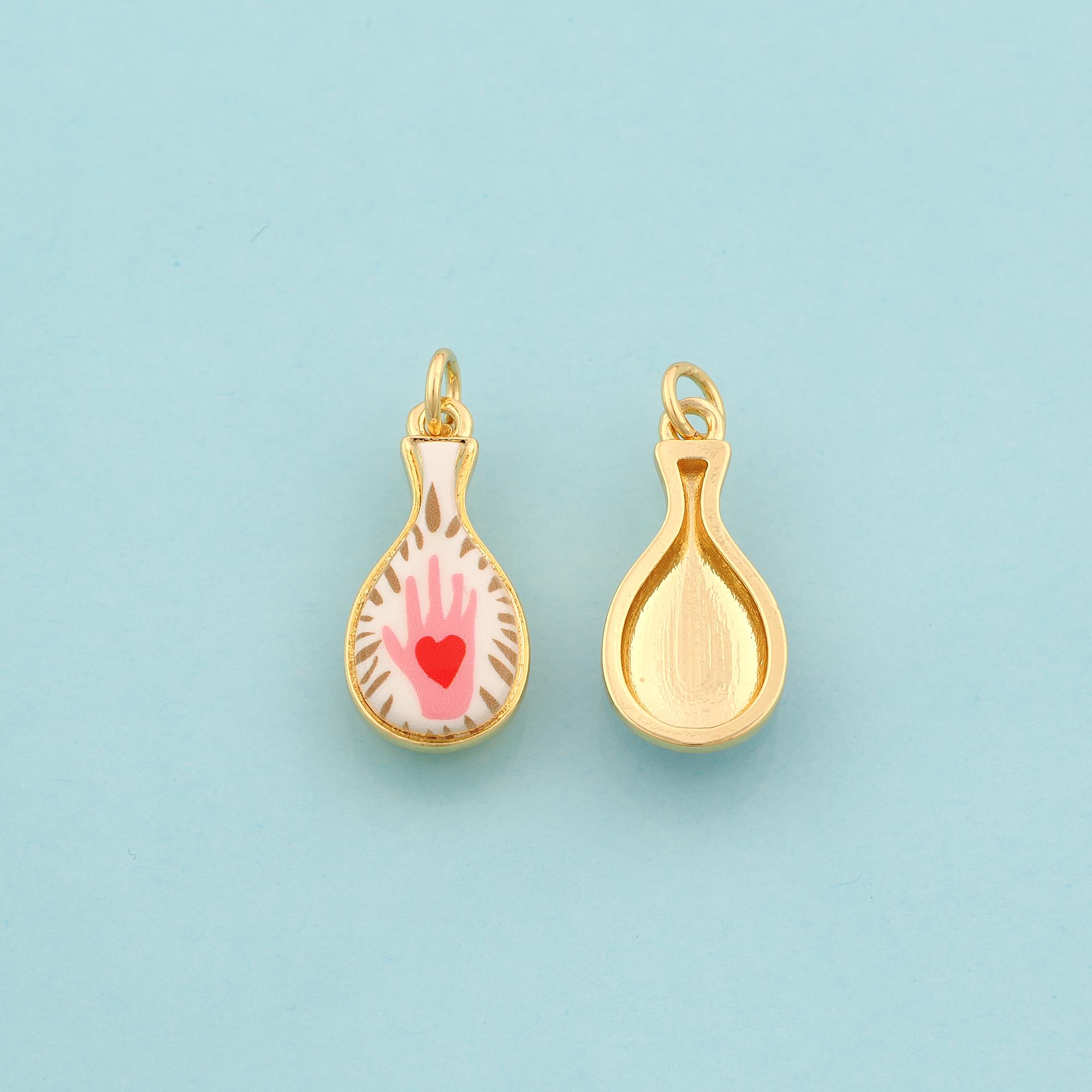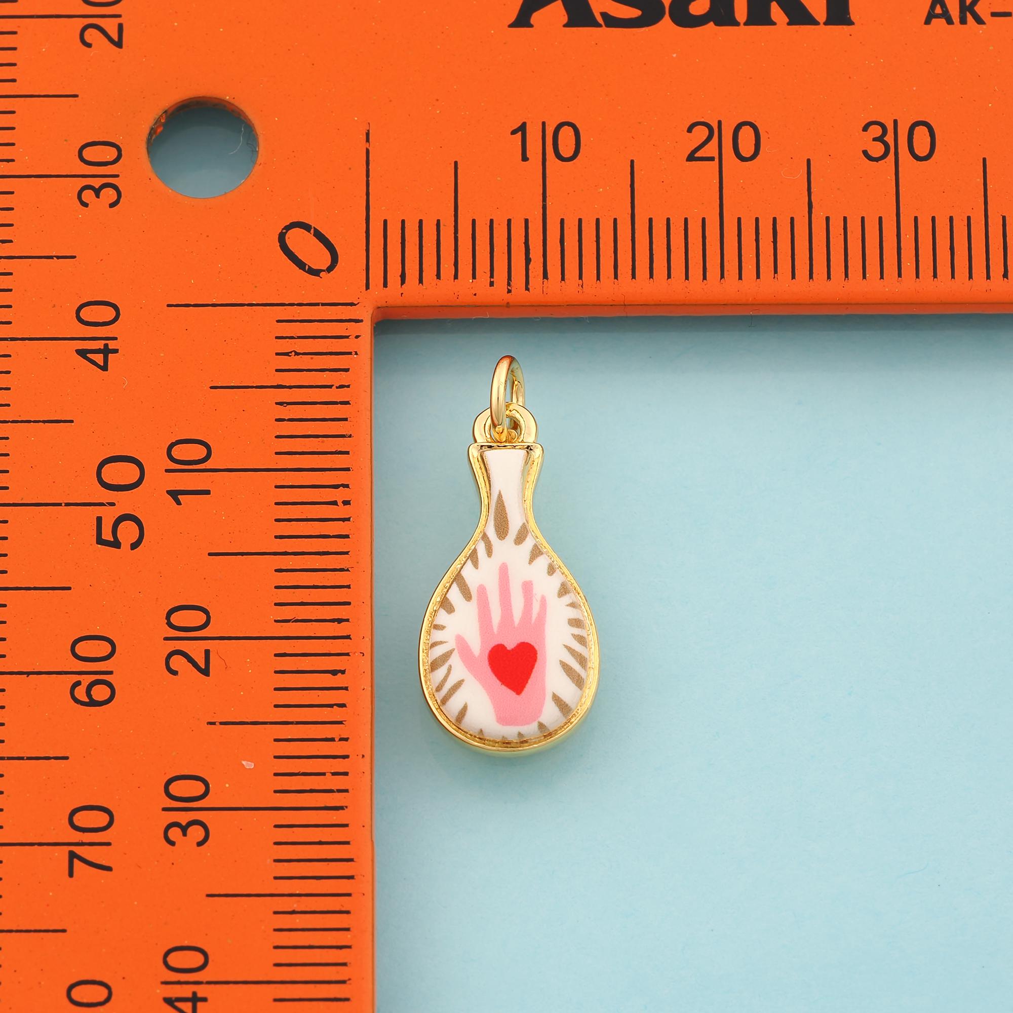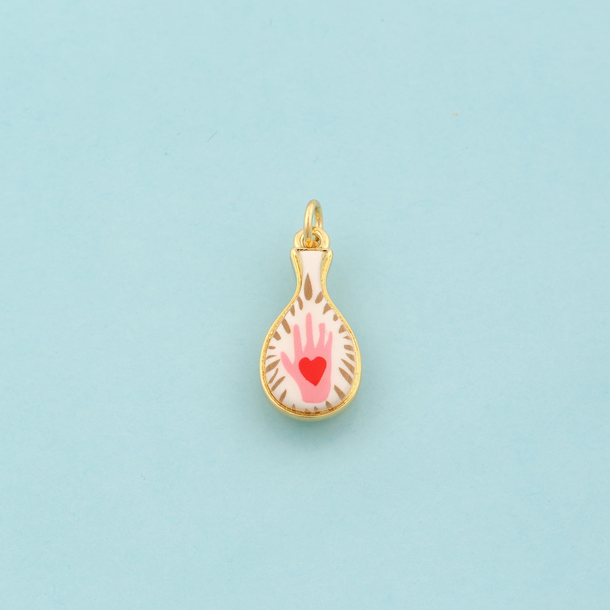 Gold Vase Charms,Hand Jewelry,Enamel Heart Pendant for DIY Jewelry Making,18K Gold