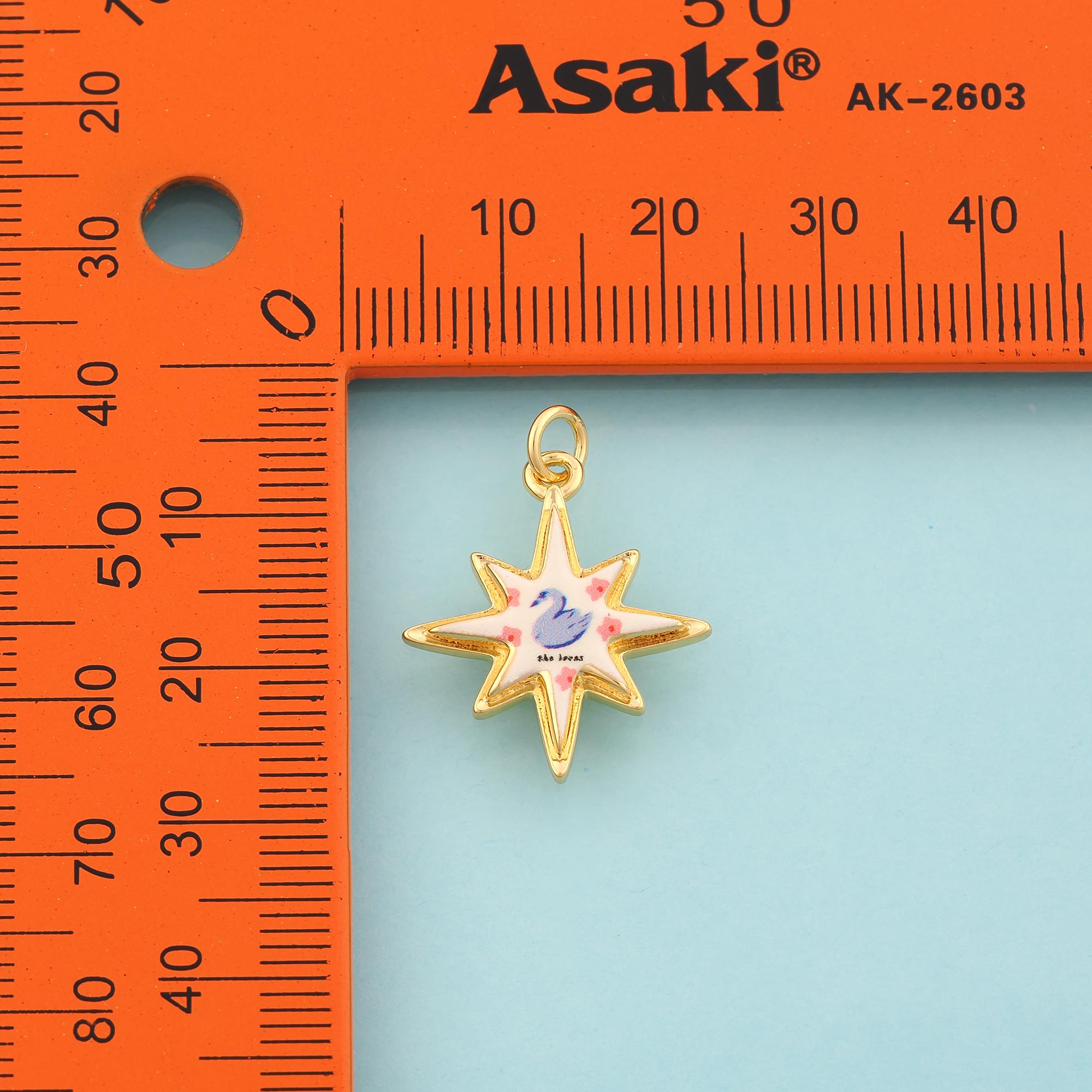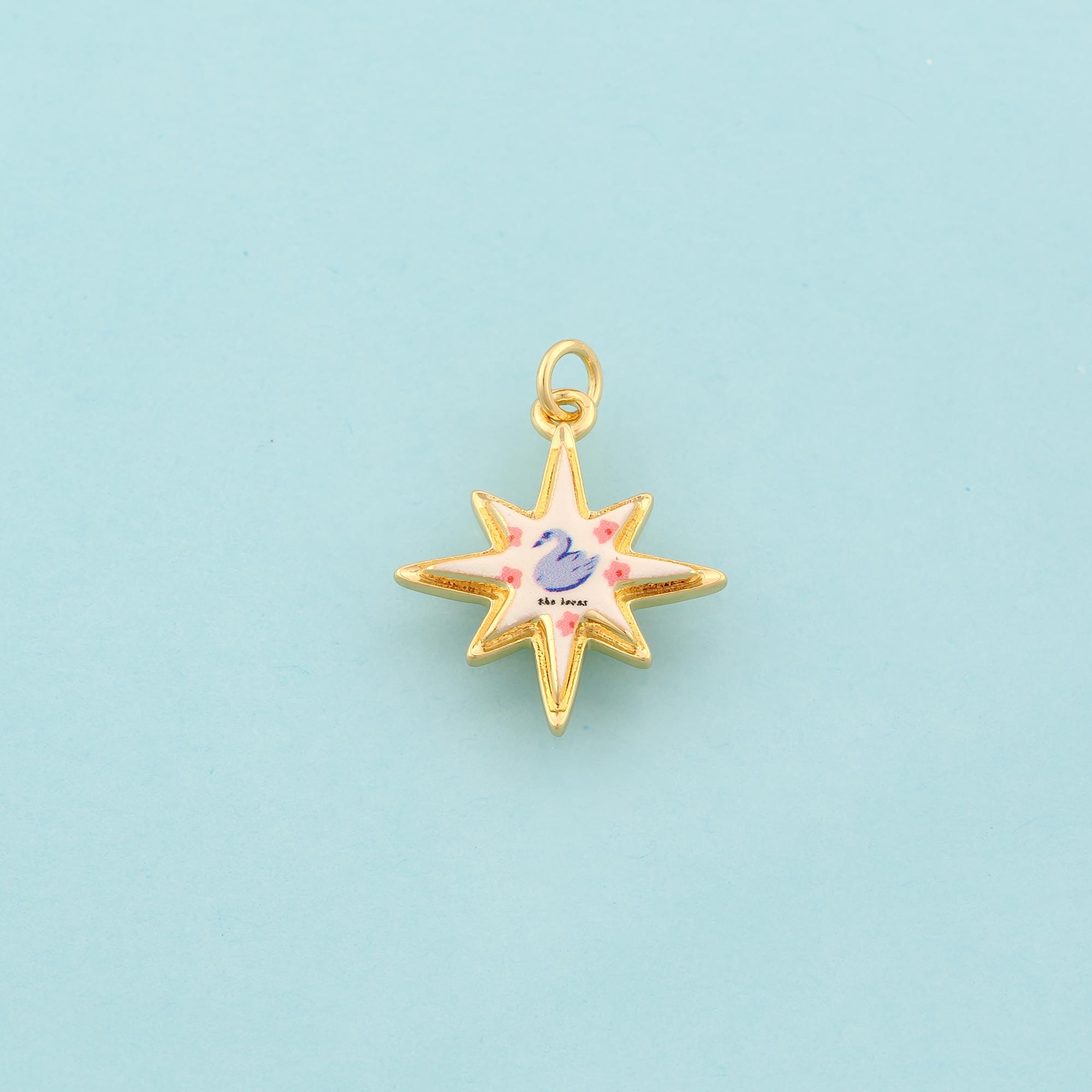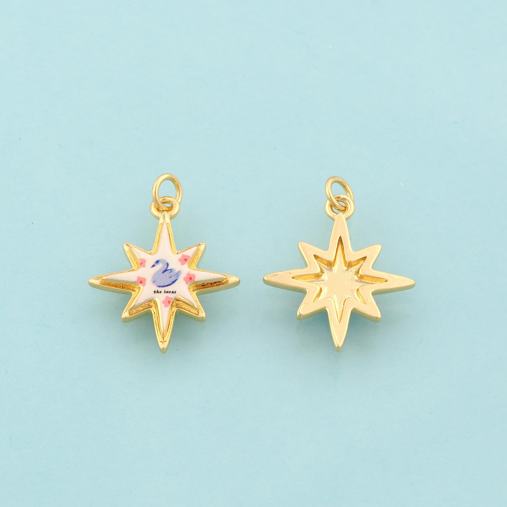 Gold Polaris Charms,Swan Jewelry,Enamel Starburst Pendant for DIY Jewelry Making,18K Gold