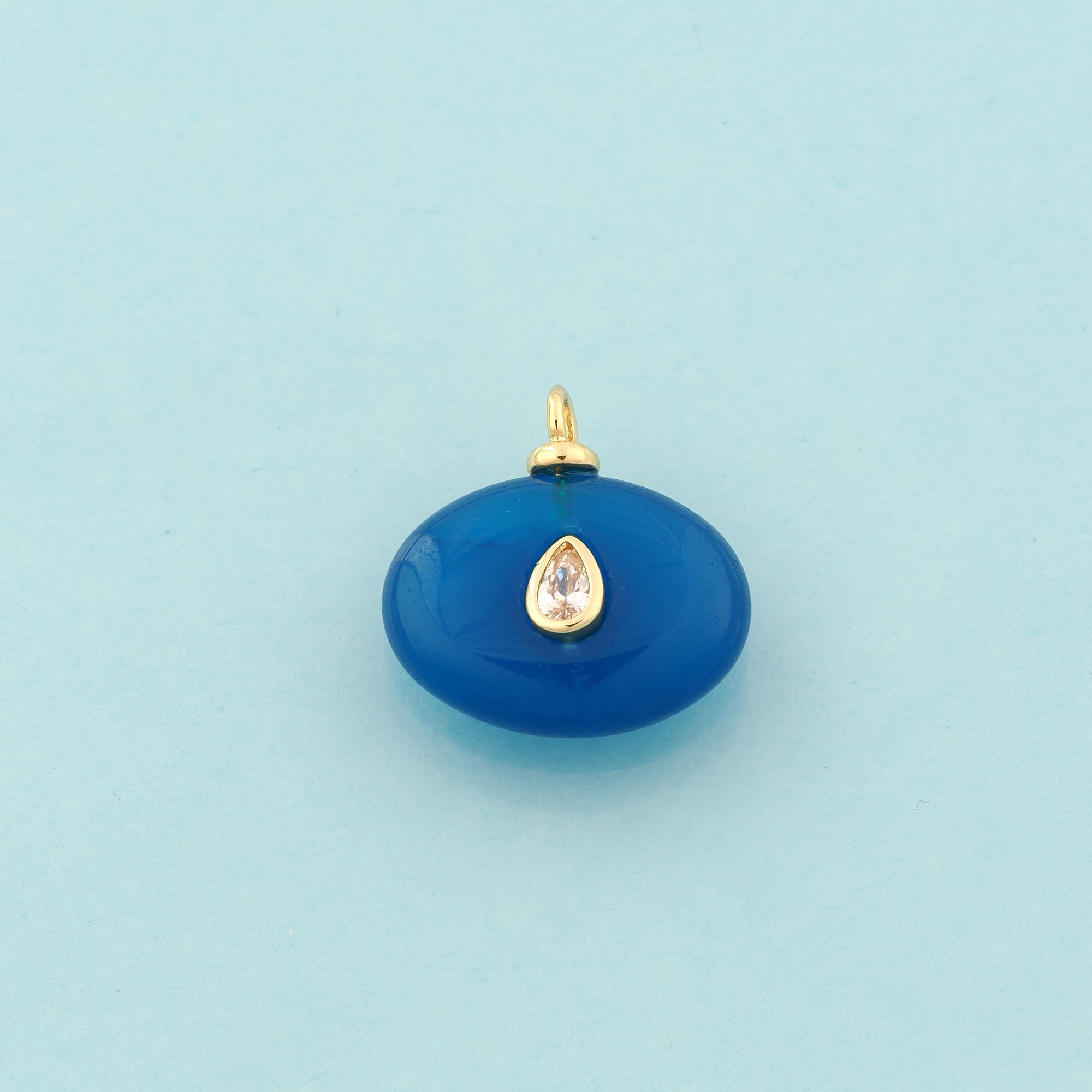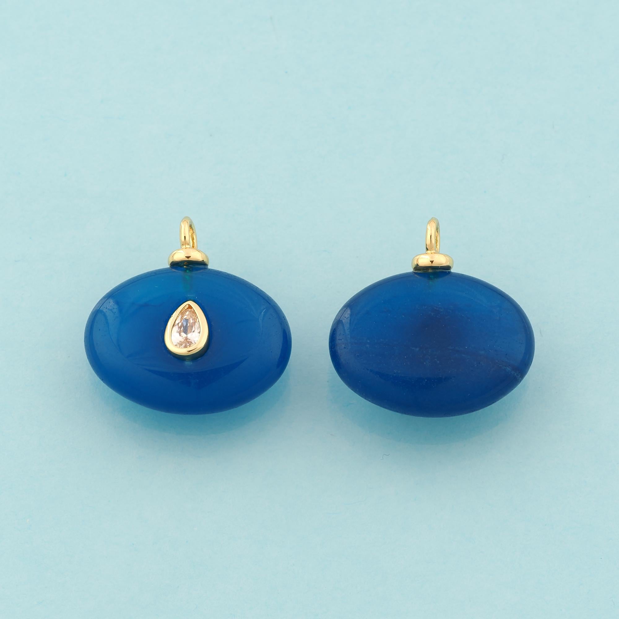 Gold Energy Stone Charms,Natural Stone Jewelry,Blue Jade Pendant for DIY Jewelry Making,18K Gold